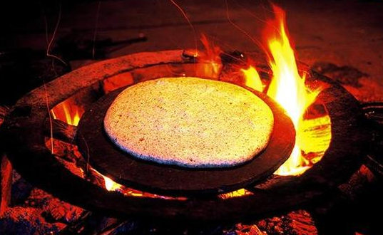 在貢山縣丙中洛地區(qū)有一種特殊的石板,可用刀削,石板呈青色,經(jīng)火烤之后堅(jiān)硬不裂,并有一層油亮光澤。當(dāng)?shù)嘏迦罕姀氖蠢锿诔鍪^后用刀剝開(kāi),削成圓狀當(dāng)鍋用。烤粑粑時(shí)只要將蕎面、包谷面、麥面調(diào)成糊狀后倒在燒燙的石板上,反復(fù)翻烤5分鐘之后即可食用,不需加任何佐料,這樣烤出來(lái)的粑粑,香甜酥脆,保持面粉的原汁原味,是貢山怒族待客的一種簡(jiǎn)易食品。在丙中洛的“農(nóng)家樂(lè)”中,你就可以現(xiàn)場(chǎng)看到“石板粑粑”的做法,并親口嘗嘗熱氣騰騰的“怒江石板粑粑”。