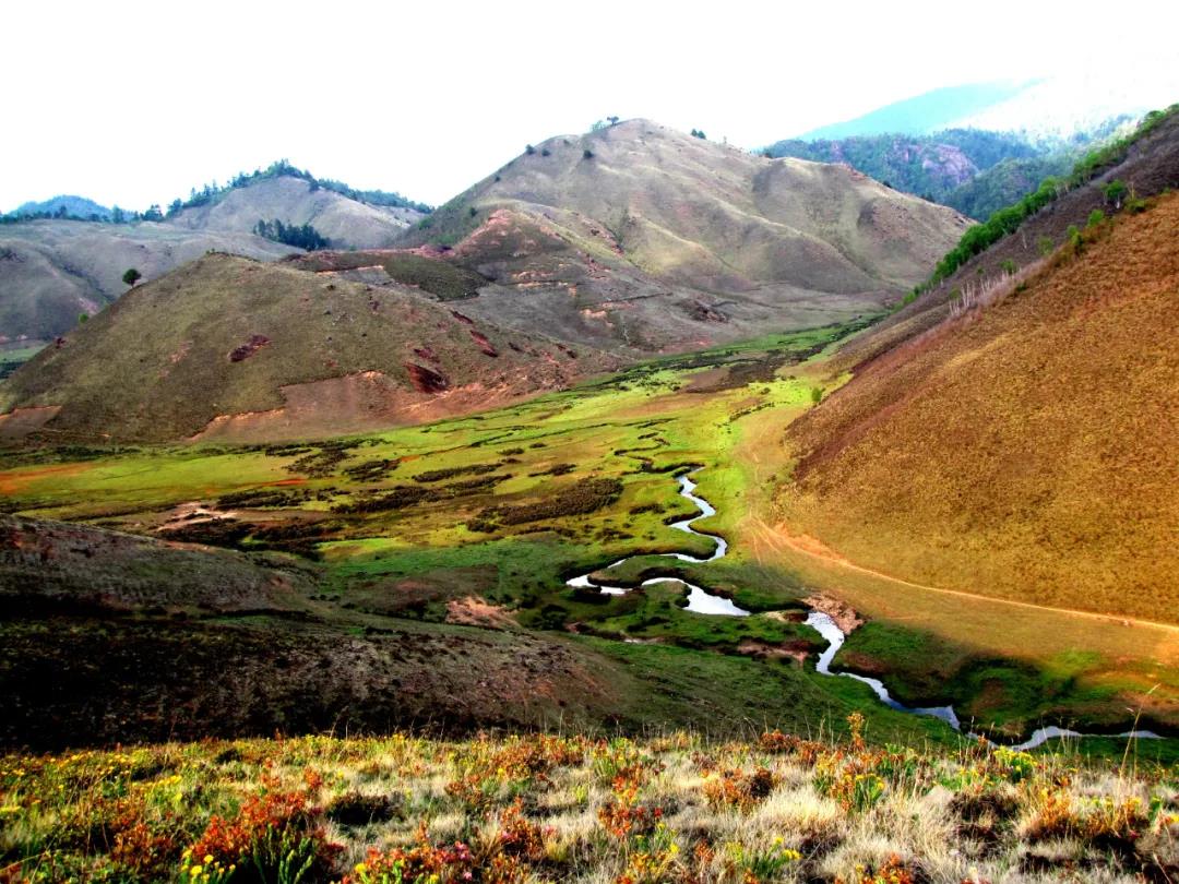 情人壩四面環(huán)山,中央隆起,綠茵蔥蔥的草甸中央流尚著一條溪流,四周山體蜿蜒起伏,層層疊疊的白樺林和楓葉樹(shù),呈現(xiàn)出五采繽紛的色彩,情人壩旁的稗子溝點(diǎn)綴出優(yōu)美的田園風(fēng)光,讓人流連忘返。每年五月初五,人們身著盛裝相聚于此,載歌載舞。