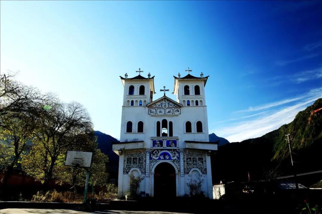 大山深處的哥特式建筑風(fēng)格,堪稱怒江大峽谷中最漂亮的天主教堂。由法國傳教士任安守耗時10年于1935年建成,“文革”期間被毀,1996年在原址重建,規(guī)模較之原來的小些,即使略顯簡陋,但也令人驚嘆,深山之中崇拜自然的民族也會有不同的信仰。