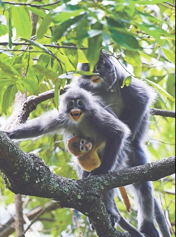 高黎貢山南部,生活著“長(zhǎng)尾精靈”菲氏葉猴。它們是典型的東南亞熱帶和南亞熱帶的樹(shù)棲葉猴,主要棲息于江河兩岸和低山溝谷地帶海拔1500米以下的熱帶雨林、季雨林或亞熱帶常綠闊葉林帶。
