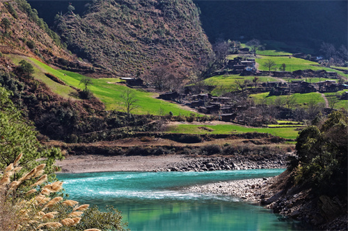 羅古箐村,在“情人壩”的下方,即羅古箐景區(qū)的人口處有一個(gè)大樹子,也叫羅古箐村,是普米族遷入蘭坪的第一個(gè)定居點(diǎn),至今還保留著普米族完整的歷史文化。