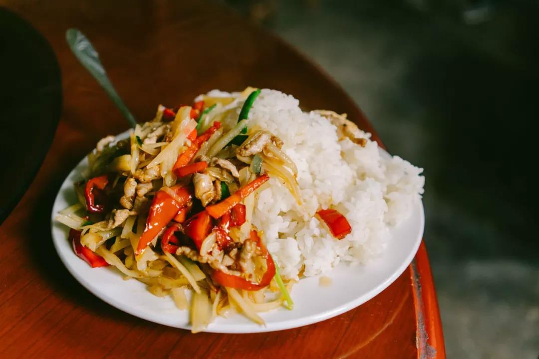 我和司機(jī)小王走進(jìn)餐廳點(diǎn)了兩碗蓋飯,青菜和炒肉味道都出乎意料地鮮美,價(jià)格也很便宜,整個(gè)餐廳滿滿是煙火氣的香味。
