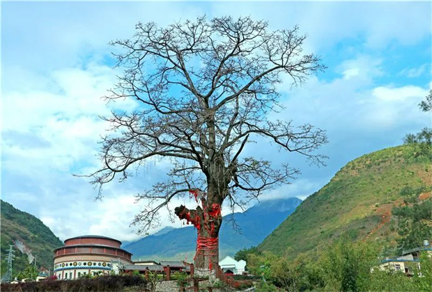 千年古樹(shù)木棉紅,萬(wàn)年福佑有緣人。一棵挺拔磅礴的古樹(shù)木棉紅屹立在百花梯田畔,枝繁葉茂,樹(shù)干上纏繞著的紅色布條,飽含人們對(duì)美好生活的向往與期盼。