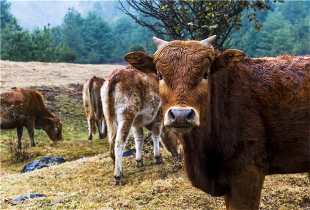 草甸上星星點(diǎn)點(diǎn)的牛羊若隱若現(xiàn)