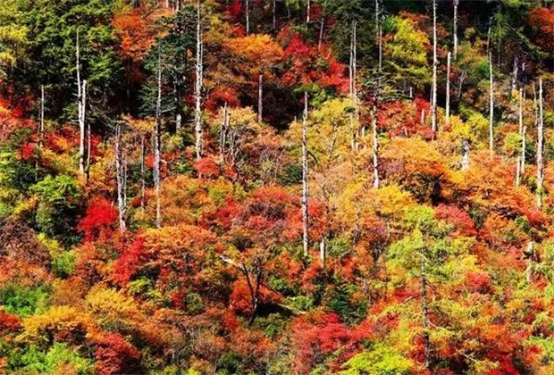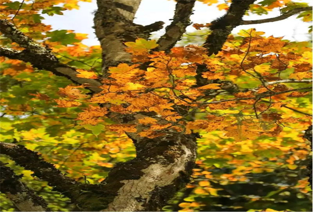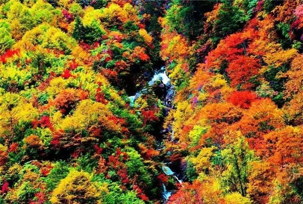 更多時(shí)候,是悄悄地、安靜地,星星點(diǎn)點(diǎn)地分布,翠綠中先在那深處染紅了幾棵,又在那角落里露出些金黃的葉子。