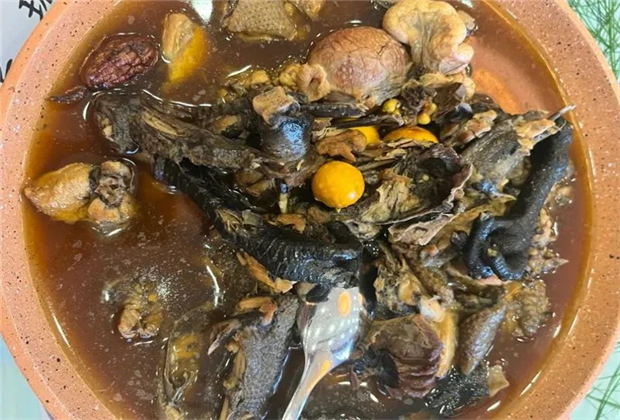 漆油雞,是生活在怒江峽谷的傈僳族、怒族等民族喜愛的傳統(tǒng)美食。逢年過節(jié)或遠方的朋友到來,都會做上這道菜來慶賀佳節(jié)、招待貴賓,是當?shù)厝俗顬橄矏鄣倪M補美食之一。