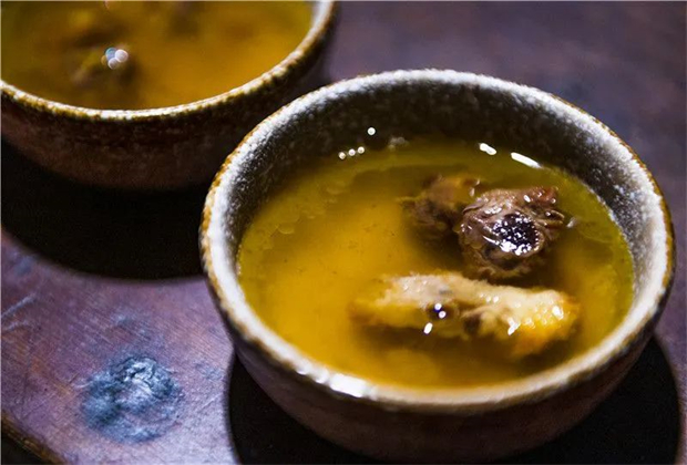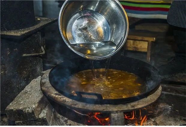 “峽啦”制作步驟簡單,只需將雞肉剁成小塊或剁碎,然后放在鍋里用漆油煎炒,炒至脆黃時,稍退火再倒入燒酒,蓋上鍋蓋煮至沸騰即可食用。