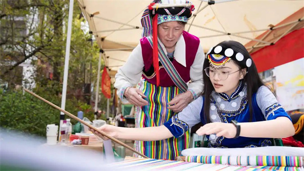 當(dāng)?shù)靥厣〕砸蚕阄哆h(yuǎn)飄,勾人饞蟲。但是怒族非遺展區(qū)卻是我們停留最久的地方,因為怒族弦子彈奏的樂曲清揚動聽